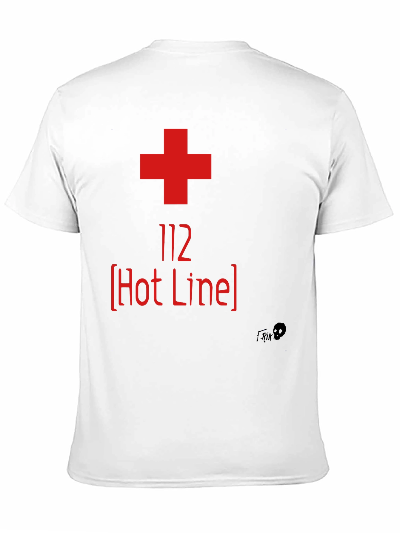 Show your support for emergency services with this striking "112 Hot Line" graphic t-shirt. This eye-catching tee features a bold red cross above the text "112 [Hot Line]" printed on a sleek black background. The design is simple yet impactful, making it a great conversation starter and a stylish way to show your appreciation for first responders. Made from a comfortable, breathable fabric, this t-shirt is perfect for everyday wear. Whether you're running errands, hanging out with friends, or simply relaxing at home, this tee will keep you feeling cool and looking great. Get yours today and wear it with pride!