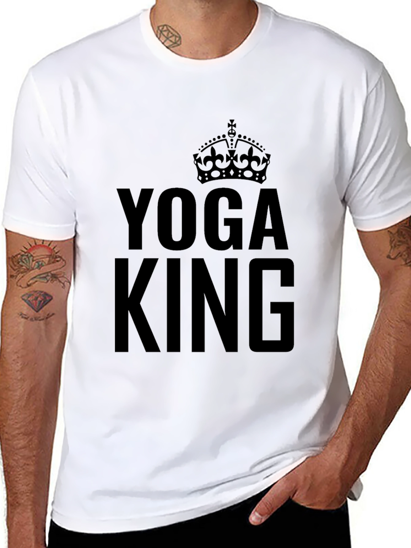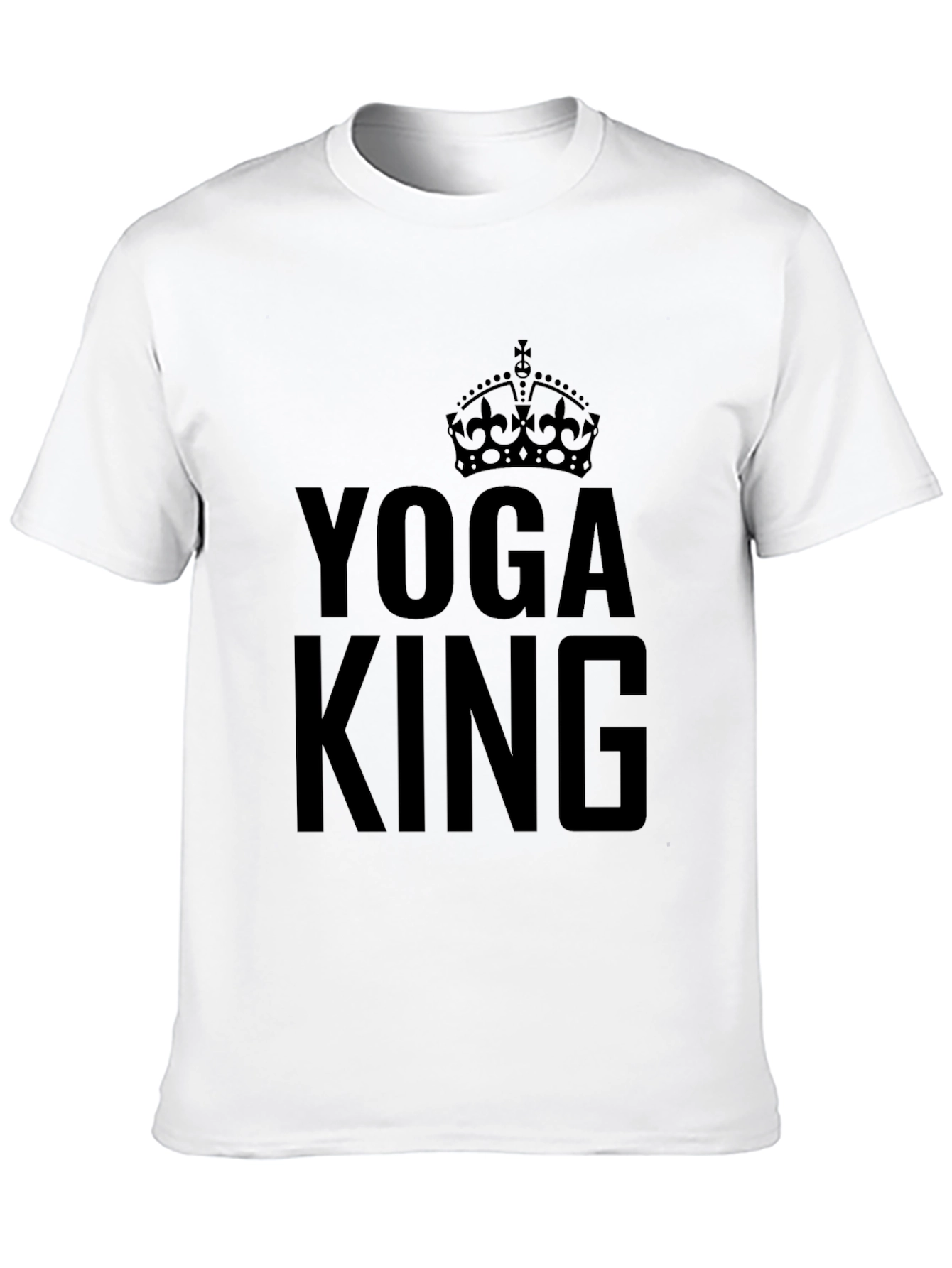 Show your love for yoga with this bold black t-shirt. Featuring a striking "Yoga King" graphic with a crown design, this tee is perfect for yoga enthusiasts and fitness lovers alike. The classic crew neck and short sleeves offer a comfortable and casual fit, ideal for workouts, lounging, or everyday wear. Made from a soft and breathable fabric, this shirt ensures maximum comfort whether you're on the mat or out and about. Make a statement with this unique and stylish graphic tee. Grab yours now!