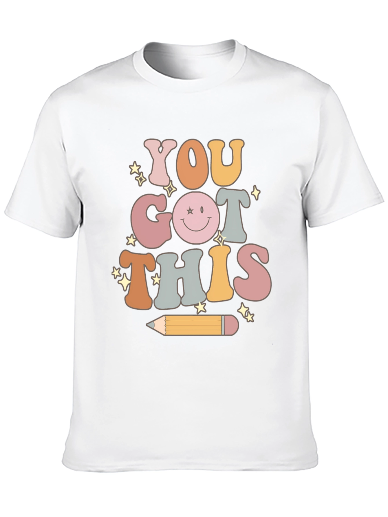 Show off your positive attitude with this stylish, unisex tee! Featuring a retro-inspired "You Got This" graphic with a smiling face, this shirt is sure to inspire confidence. A pencil motif adds a touch of creativity, perfect for teachers, students, or anyone needing a boost. Made from a comfortable, breathable fabric, this tee is ideal for everyday wear. Pair it with jeans for a casual look, or dress it up with a blazer. Spread good vibes wherever you go with this feel-good tee!